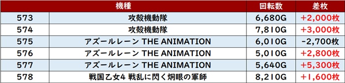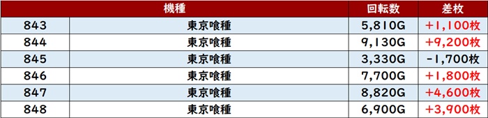 2ボックス目は「東京喰種」が平均差玉数+6,220玉に!