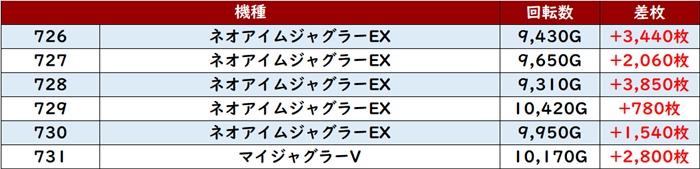 中には差枚数+1万枚超えの台も複数見られ、ユーザー達の度肝を抜いた!