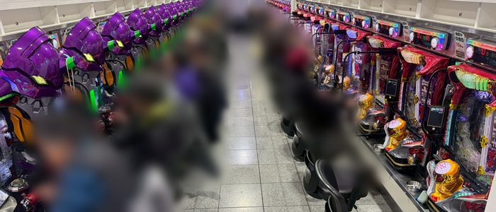 朝イチは「攻殻機動隊」「スマスロ化物語」「スマスロ北斗」「北斗転生2」「モンキー5」「マギレコ」「いざ番」「スマスロ秘宝伝」「東京喰種」「東京リベンジャーズ」「カバネリ海門決戦」「炎炎2」「鉄拳6」が満台となった。