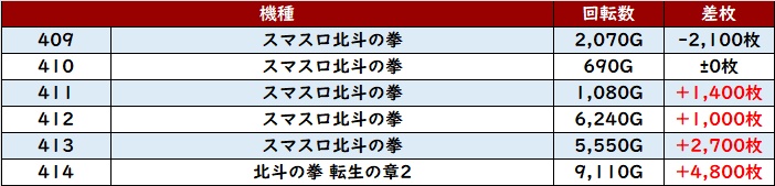 まずは「北斗転生2 415~420」が素晴らしい活躍で、盛り上がりの主役に!