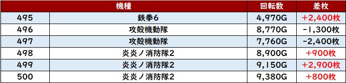 続いて「鉄拳6~炎炎2 495~500」機種を跨いで良好な結果に!
