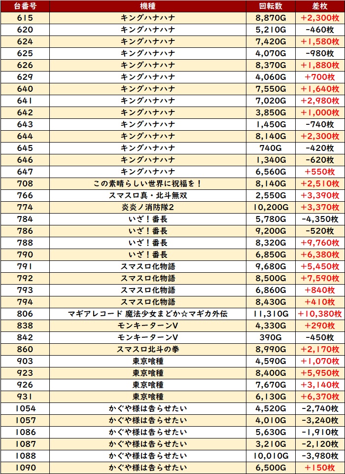 更に半数以上が回転数8,400G超えと腰を据えて打ち込まれており、特に目を惹く一角となった!