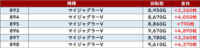 続いて「マイジャグ5 893~898」が好調さをアピール!