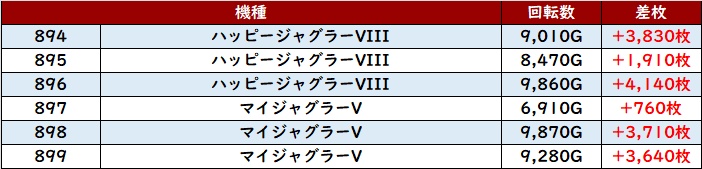 その高い稼働を伴って、大半が差枚数+3,900枚超えと文句なしの出玉感に繋げ、終日にわたり活気が溢れていた。