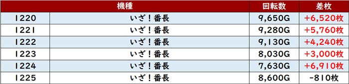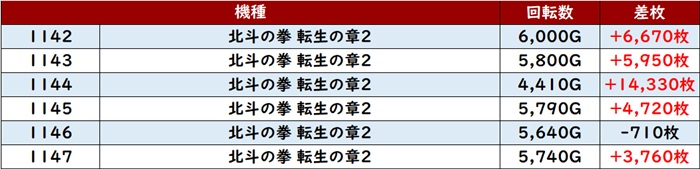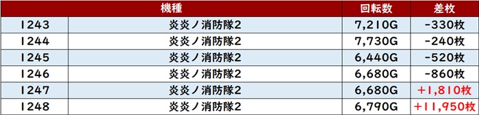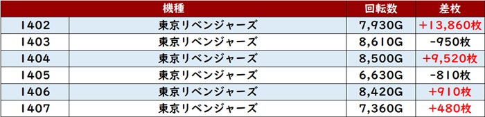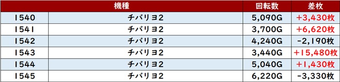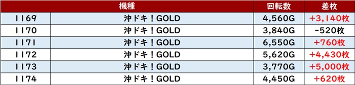 計12台中11台が大幅プラス差枚となっており、中には差枚数+10,290枚と頭一つ抜けた出玉感まで確認できた!
