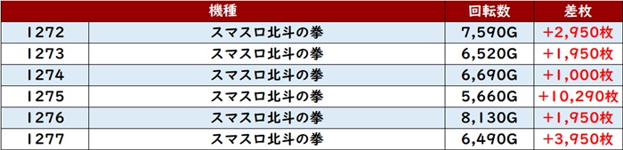 まずは「スマスロ北斗 1261~1266、1272~1277」が大盛況に!