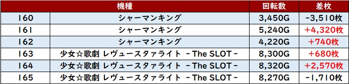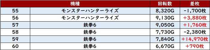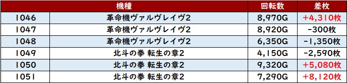 なんと差枚数+1.1万枚超えが2台も見られ、極上の結果を周囲に披露していた!