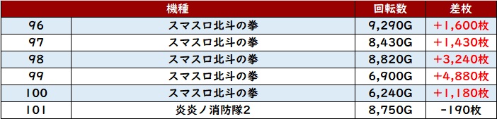 ・集計機種計42台総差枚数:+109,500枚