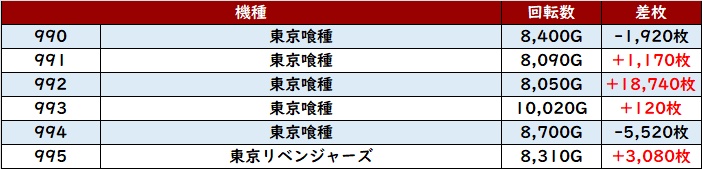 続いて「東京喰種~東京リベンジャーズ 990~995」が機種跨ぎで大盛況!