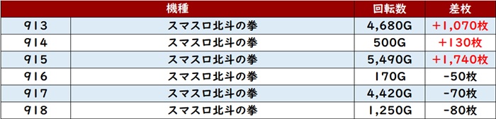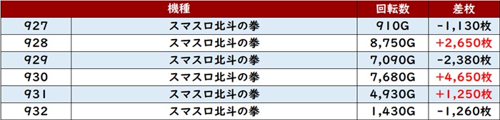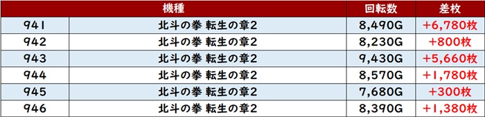まずは「北斗転生2 941~946」が盛り上がりを牽引!