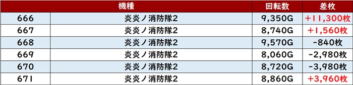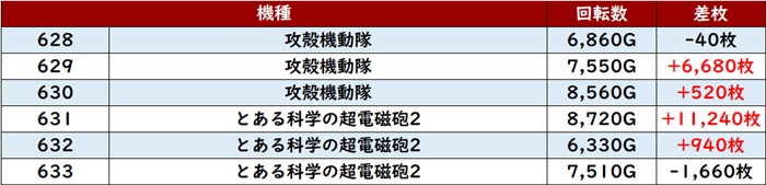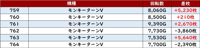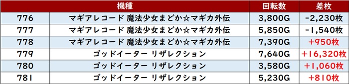 差枚数+1万枚超えを先頭に、大半が差枚数+5,000枚超えと素晴らしい結果を残していた!