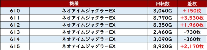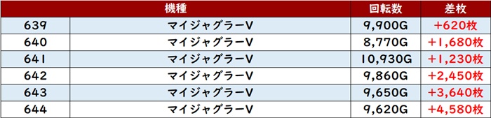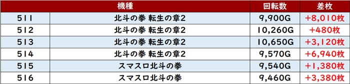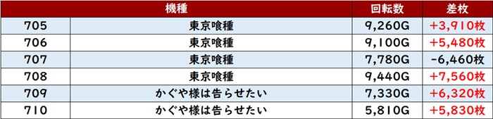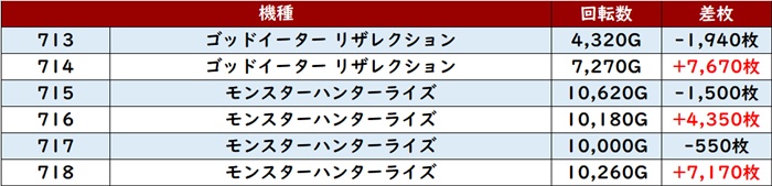 チャンスを感じ取ったユーザーが熱心に打ち込み、こちらも全台プラス差枚と輝かしい結果となっていた。