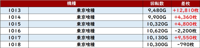 まずは「東京喰種 1013~1018」が主役と呼ぶに相応しい数値を記録!