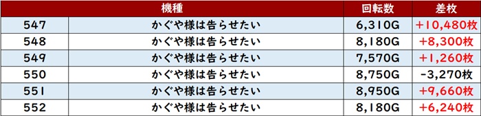 まずは「かぐや様 547~552、553~558」が複数箇所で驚異的な活躍を見せる!
