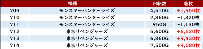 3台が差枚数+1万枚超えとユーザーを唖然とさせ、大半が回転数8,100G超えと圧巻の稼働状況も伴っていた!