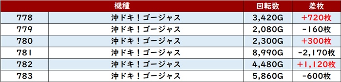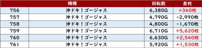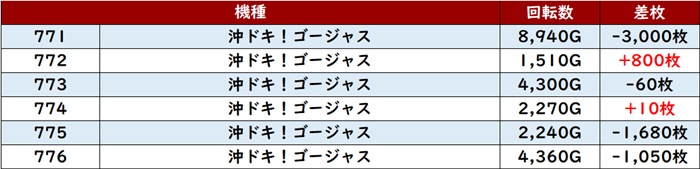 しかし出玉感を伸ばし切れなかった台が多数あり、まずまずな結果となってしまった。