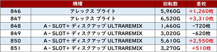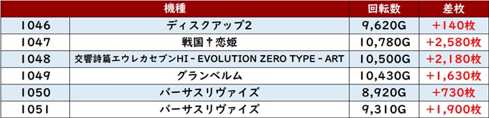 まずは「ディスク2~バーサスリヴァイズ 1046~1051」が全台プラス差枚と好調さをアピール!