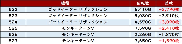 出玉面でも差枚数+8,860枚を筆頭に殆どがプラス差枚を記録し、好調さをアピールしていた。
