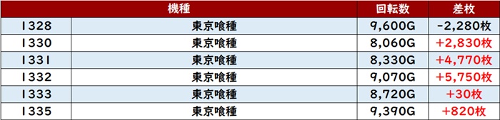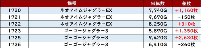・集計機種計60台総差枚数:+120,300枚