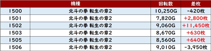 ・1台あたりの平均差枚数:+2,010枚