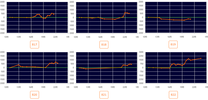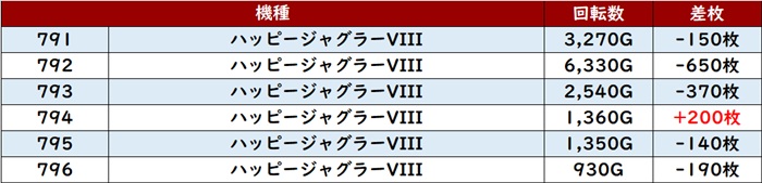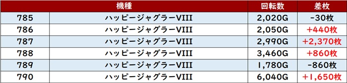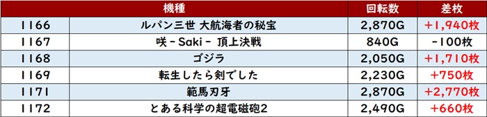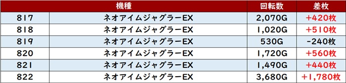 中には差枚数+8,200枚と思わず目を惹く数値まで見られ、一際目立つ一角となっていた!