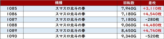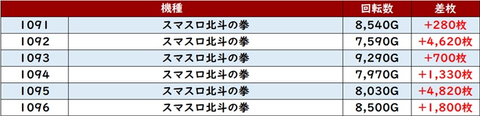 続いて「スマスロ北斗 1085~1090、1091~1096」も好調に!