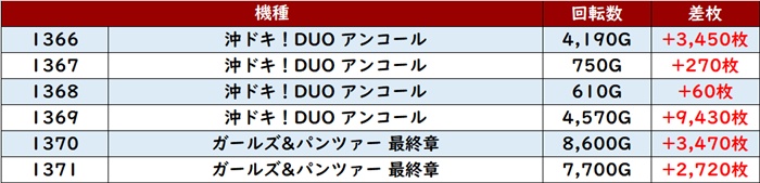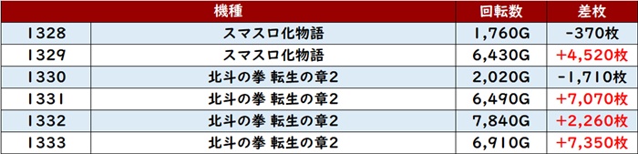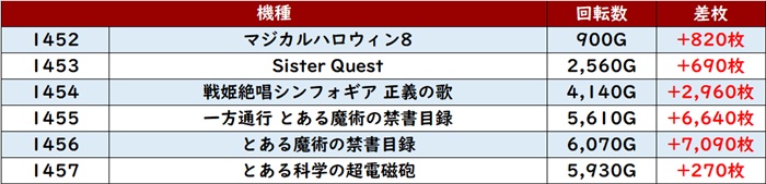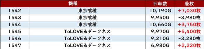 更に「東京喰種~ToLOVEる 1542~1547」が回転数1万G超えが多数見られる程の高稼働を記録!