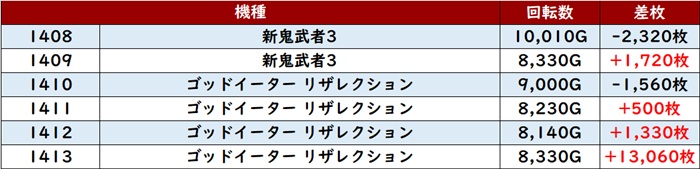 まずは「新鬼武者3~スマスロゴッドイーター 1408~1413」がポテンシャルの高さを遺憾なく発揮!