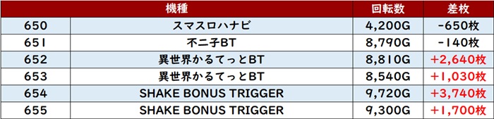 2ボックス目は「海ジャパン極」が平均差玉数+25,250玉と圧巻の結果を披露!