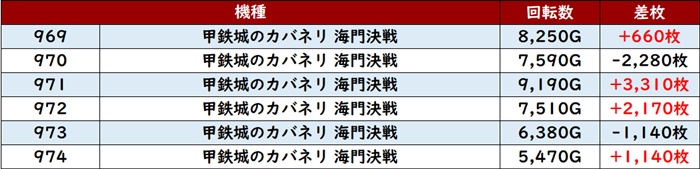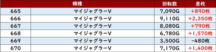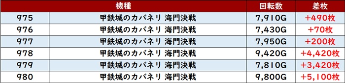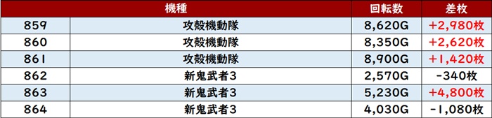 回転数9,700G且つ差枚数+13,010枚と抜群の結果を残しており、存在感を放っていた。