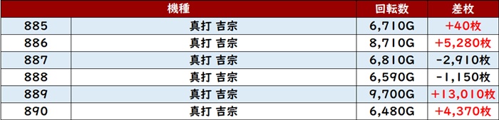 続いて「真打吉宗 885~890」から衝撃的な数値を叩き出す台を目撃!