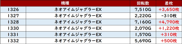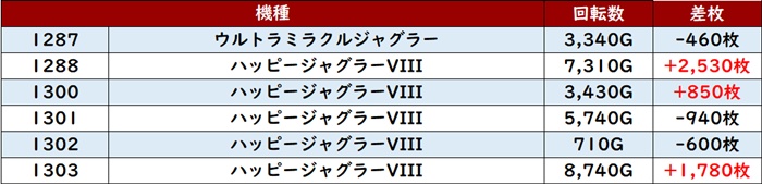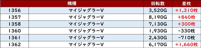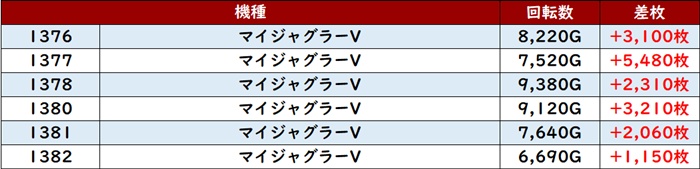 続いて「マイジャグ5 1376~1382」が優秀な出玉感を記録し、存在感をアピール!