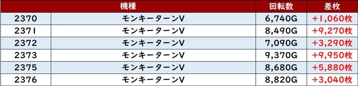 まずは「モンキー5 2370~2376」が圧巻の出玉感に!