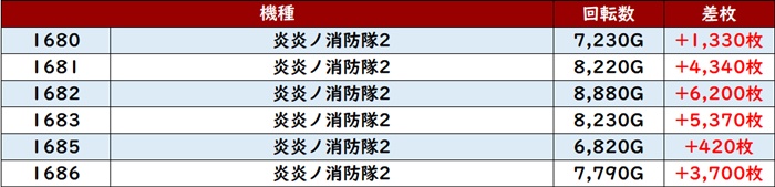 全台大幅プラス差枚に加え、差枚数+9,200枚超えが2台と驚異的な結果を残し、盛り上がりの火付け役を担った!