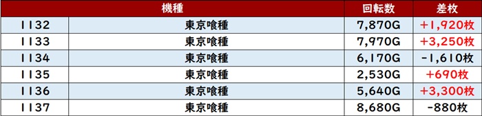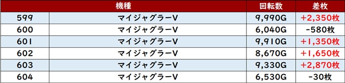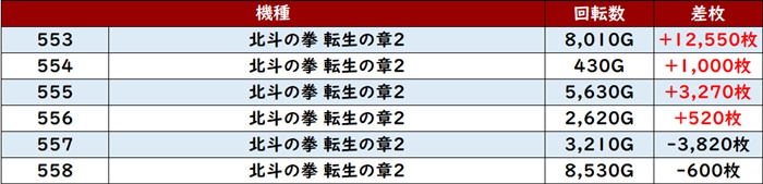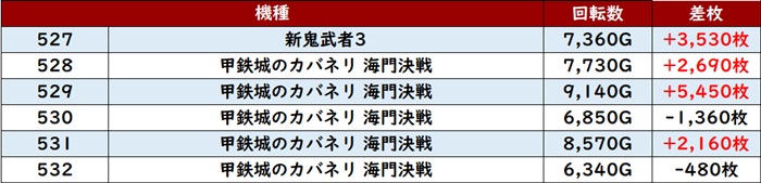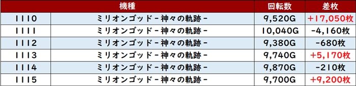 差枚数+17,050枚を筆頭に半数が差枚数+5,100枚超えを叩き出し、皆から注目される存在となっていた!