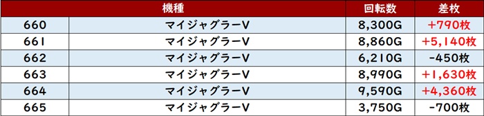 続いて「マイジャグ5 660~665」が好調さをアピール!