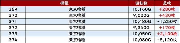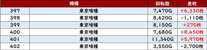 今回は「東京喰種」「ヴヴヴ2~北斗転生2」に状況が良さそうな箇所を確認!