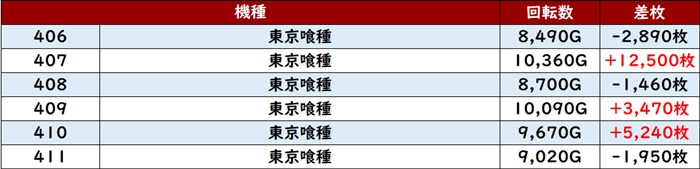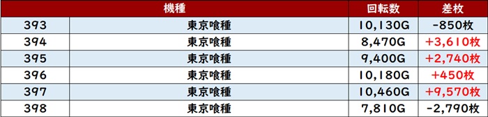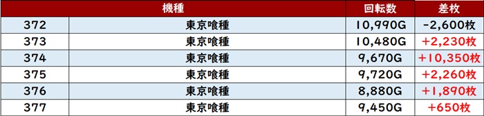 ますは「東京喰種」機種跨ぎ箇所も含め、前回同様4箇所で好調さを露わに!