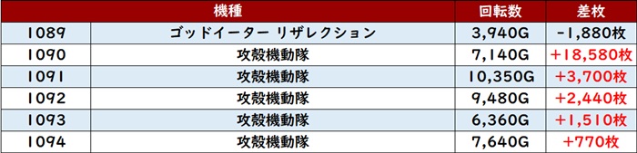 続いて「スマスロゴッドイーター~攻殻機動隊 1089~1094」も大賑わい!