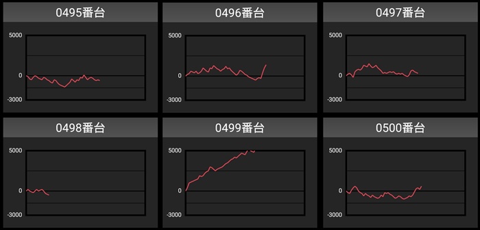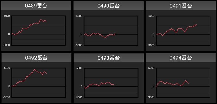 殆どが大幅プラス差枚に加え、中には差枚数+18,510枚とコンプリート機能が作動したらしき台まで見受けられ、誰もが目を離せなかった!