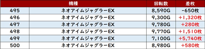 回転数9,200G超えや大幅プラス差枚を叩き出す台が続出し、ユーザー達の熱狂ぶりが見て取れた。