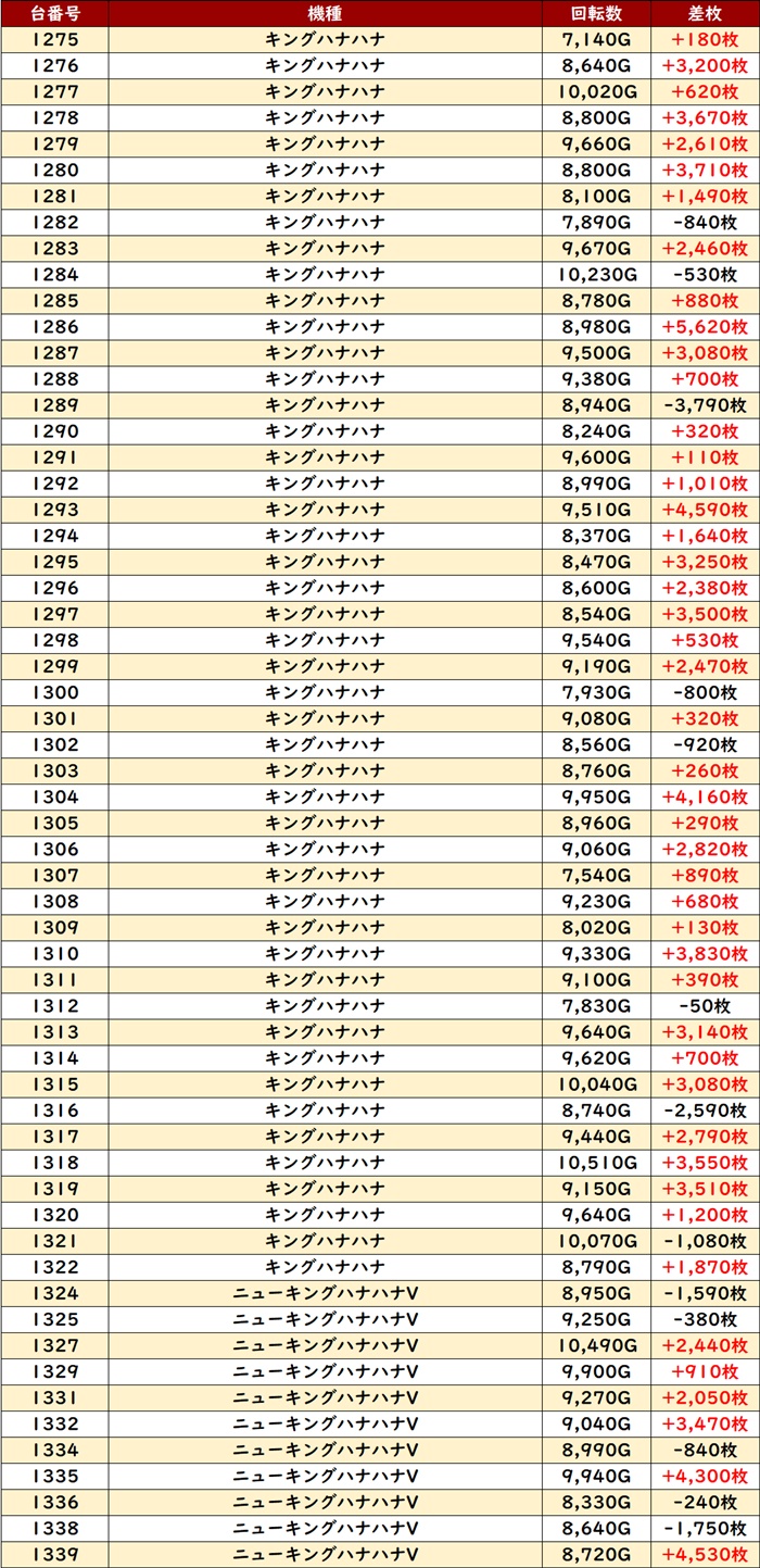 回転数9,000G超えや、差枚数+12,620枚を筆頭に驚異的な出玉感を叩き出す台が続出し、輝かしいほどの存在感を放っていた!