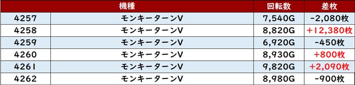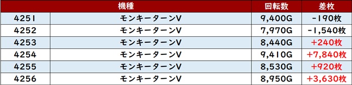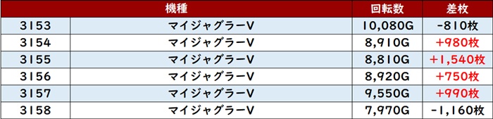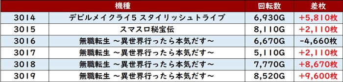 その稼働の甲斐あってか半数以上が差枚数+6,300枚以上の出玉感を叩き出していた。