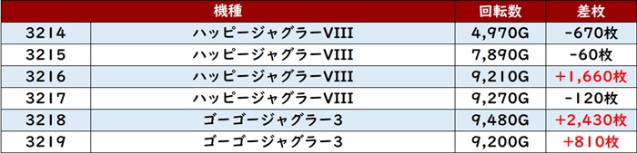 差枚数+12,860枚と大台突破した台も見受けられ、人気機種らしい盛り上がりを感じることが出来た!