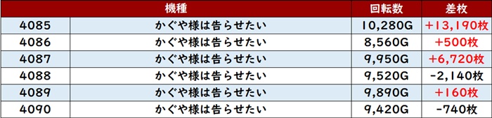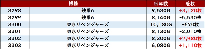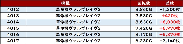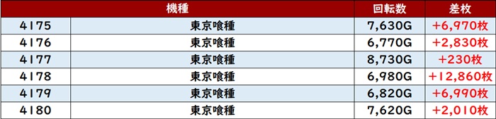 まずは「東京喰種 4175~4180」が全台プラス差枚と絶好調に!