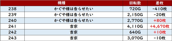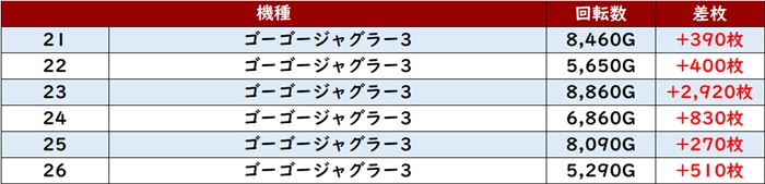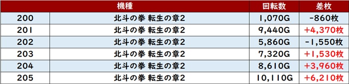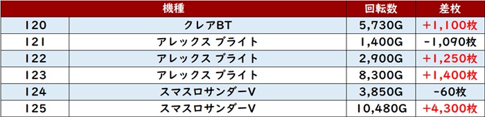 大半が回転数7,300G超え且つ大幅プラス差枚と好調ぶりをアピールしていた!