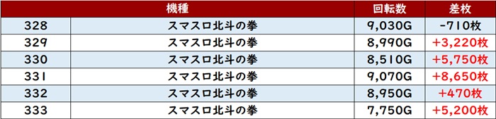 続いて「スマスロ北斗 328~333」が凄まじい稼働率を記録し、終日大盛況!