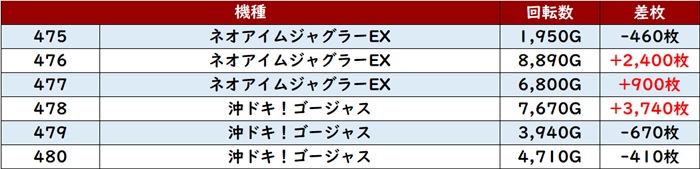 ・1台あたりの平均差枚数:+3,440枚