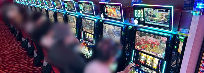 朝イチは「マイジャグ5」「モンキー5」「炎炎2」「カバネリ海門決戦」「マギレコ」「スーパーブラックジャック」「モンハンライズ」「東京喰種」「攻殻機動隊」「スマスロ化物語」が満席となった。