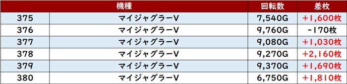 また「マイジャグ5 375~380」も優秀な状況を証明するような活躍ぶりに!